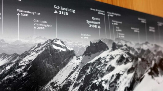 Das hochauflösende Panorama zeigt dir die umliegenden Gipfel 360° rund um den Gross Titlis. Aufgenommen im Frühling 2022 bevor alle Gletscher weggeschmolzen sind 😉
