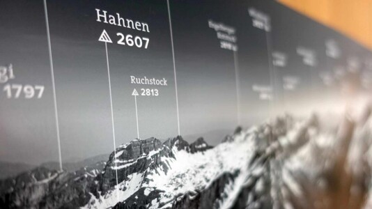 Beschriftet mit den Namen der wichtigsten Gipfel und dessen Höhequoten. Siehe Tab „Beispielseiten“ für mehr Eindrücke.