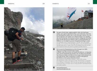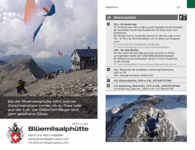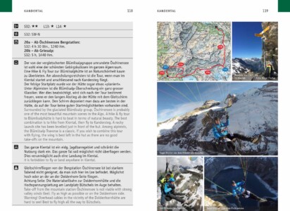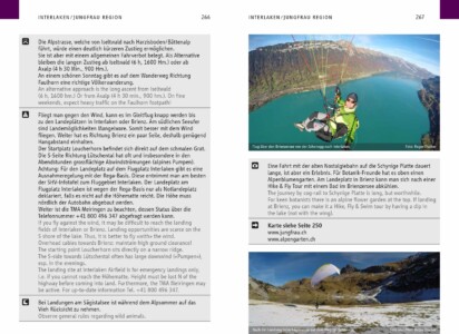 Die Touren können dabei auf topographischen Karten im Massstab 1:100 000 und alle Start- und Landeplätze auf Karten im Massstab von 1:25‘000 nachgeschlagen werden. Weiter verfügt das Buch über informative Kapitel wie Tourenvorbereitung, Hike & Fly Praxistipps von Chrigel Maurer, Meteo (insbesondere über die lokalen Wetterphänomene in den verschiedenen Tälern des Berner Oberlandes) und Wildtierschutz. Als Auflockerung gibt es im Buch diverse Erlebnisberichte, unter anderem auch einen über Roger’s Schweiz Traversierung per Hike & Fly.